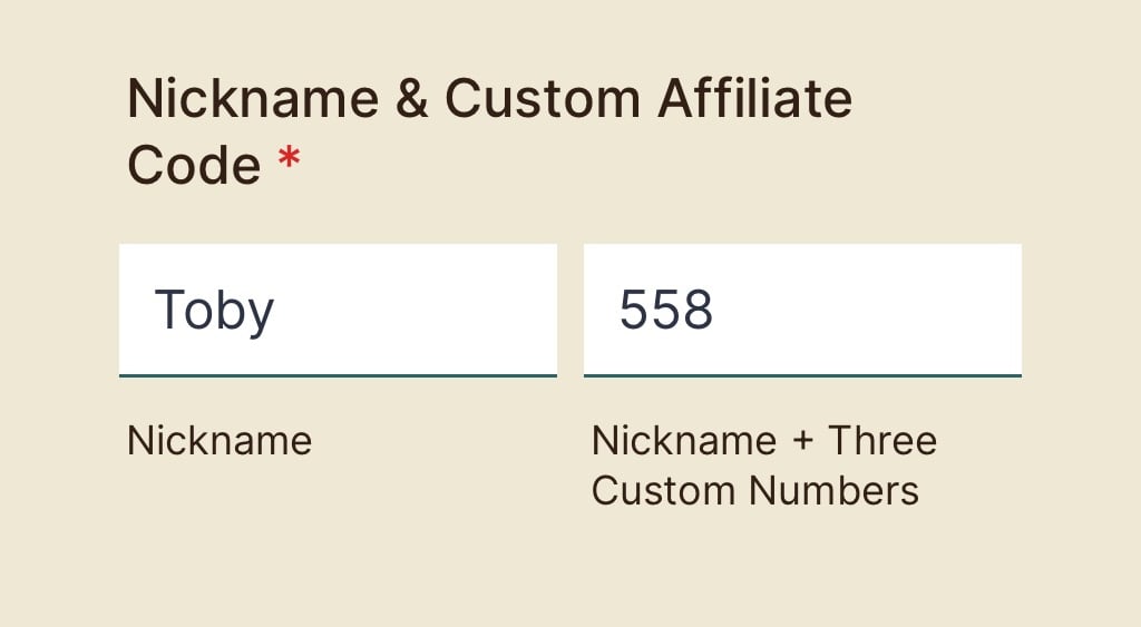 Your affiliate code is the nickname and three numbers you choose when you sign up. This unique code tells us exactly which affiliate sent a new subscriber.